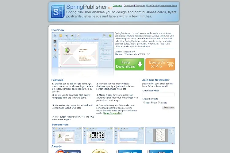 SpringPublisher is a simple desktop publishing software that can meet your graphics needs aside Adobe InDesign. It is void of complexity and very easy to use. SpringPublisher has varieties of templates as well as an online template store, detailed help-files, and powerful multiple-layer editor which aids the easy design of posters, flyers, magazines, business card, letterhead, and other impressive designs within few minutes.